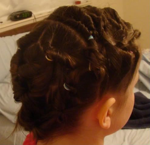 oh my GOSH - what a cute 'do! I love those swim 'dos! They look all twisty, though! I bet it curls like crazy when you take it out! cute!